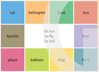 -Nối phương tiện giao thông của bạn với một động từ, sau đó đặt một câu đúng, ví dụ: Một chiếc ô tô chạy