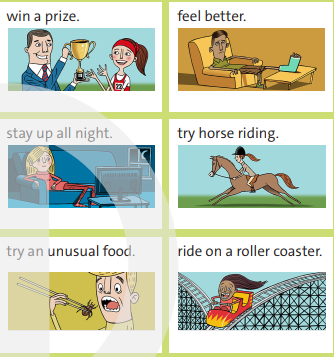 1. A BOARD GAME. Work in groups. Follow the instructions. 2. Order the blocks of letters to complete the sentences. 3. Circle the correct answer. 4. FIND SOMEONE WHO … Walk around the classroom and ask questions. Write a different name for each question. 5. GUESS WHO? Work in groups. Follow the instructions.