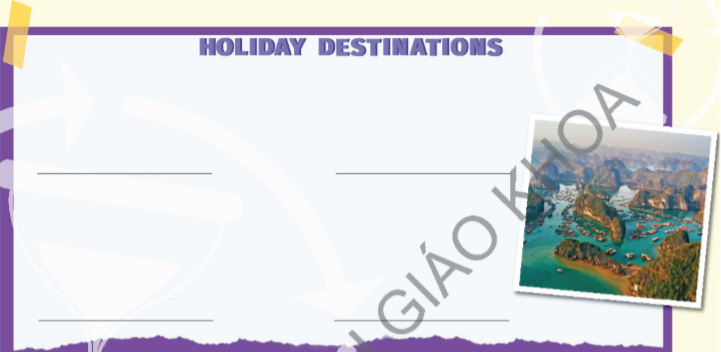 (Sử dụng áp phích ở bài 1 và các ghi chú của em ở bài 2 để trình bày về các điểm du lịch khác nhau ở đất nước em cho một nhóm các bạn học sinh nước ngoài đến tham quan trường em.)