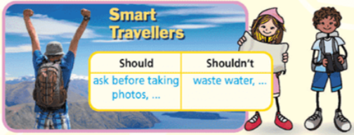 (Du khách thông minh nên làm gì? Đặt các ý tưởng trong danh sách dưới các tiêu đề chính xác. Viết vào vở của bạn.)