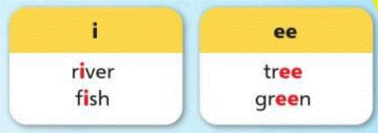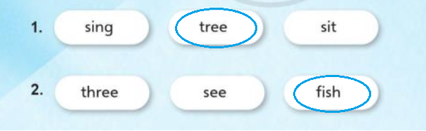 2. three (số 3)               see (nhìn thấy)                          fish (con cá)