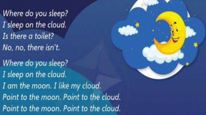 Point to the moon. Point to the cloud. (Chỉ tay vào mặt trăng. Chỉ tay vào đám mây.)