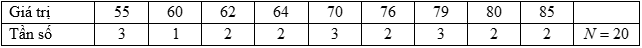 Câu 11: Có 100 học sinh dự thi học sinh giỏi Toán (điểm 20). Kết quả như sau: