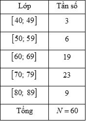 Câu 20: Một cửa hàng bán sách thống kê số tiền (đơn vị: nghìn đồng) mà 60 khách hàng mua sách ở cửa hàng trong một ngày. Số liệu được ghi trong bảng phân bố tần số sau: