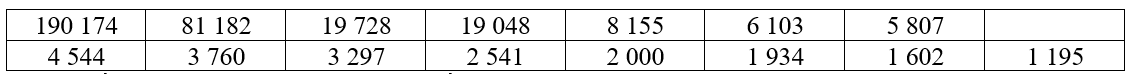 Câu 2: Tổng số ca mắc Covid-19 tính đến ngày 26/8/2021 tại Thành phố Hồ Chí Minh và một số tỉnh lân cận được thống kê như sau: