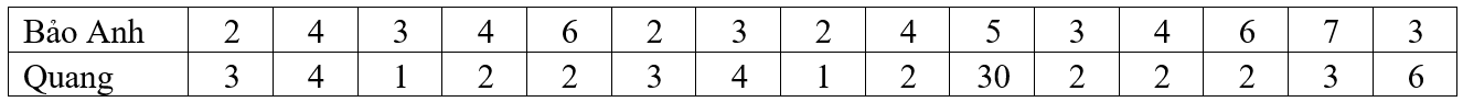 Vậy đối chiếu mẫu số liệu của Trọng suy ra giá trị ngoại lệ là 30.
