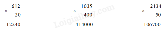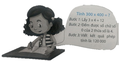 – Tính: Lấy chữ số khác 0 của thừa số thứ hai nhân với thừa số thứ nhất rồi viết thêm một, hai, ba…chữ số 0 vào bên phải kết quả vừa tìm được.