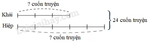 Khải và Hiệp có 24 cuốn truyện. Số truyện của Khải bằng \(\dfrac{3}{5}\) số truyện của Hiệp. Hỏi mỗi bạn có bao nhiêu cuốn truyện?