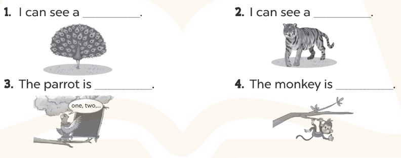 Mai: I can see a tiger and a peacock. (Tớ có thể nhìn thấy một con hổ và một con công.)