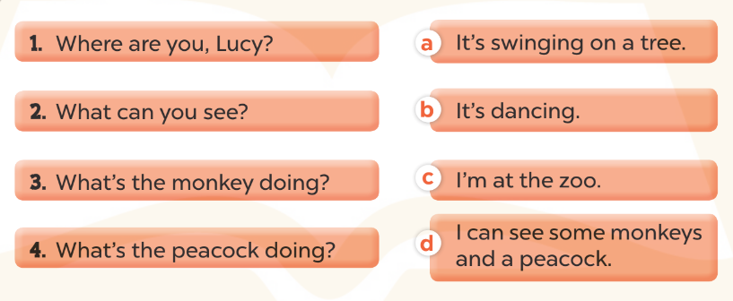 Complete and say. Do the puzzle. Look, complete and read. Read and match. Make sentences. Ask and answer. Read and answer the questions. Look and write. Write what animals you can see at the zoo and what they are doing.