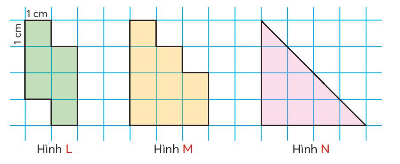 – Hình L có 6 ô vuông, mỗi ô vuông có diện tích 1 cm2.