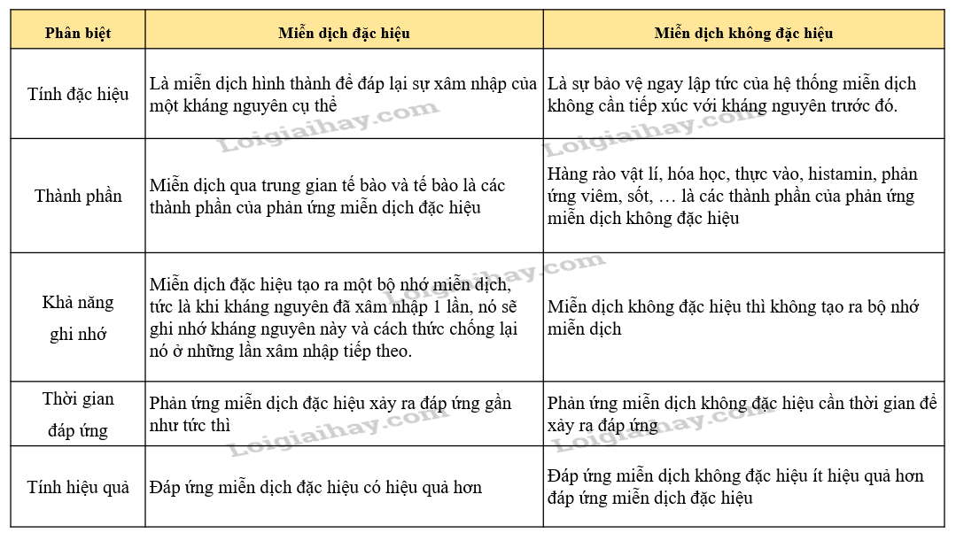Phân biệt miễn dịch không đặc hiệu với miễn dịch đặc hiệu.