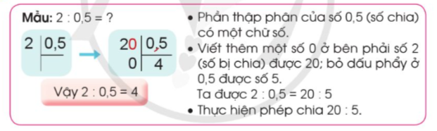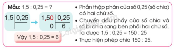 – Đếm xem có bao nhiêu chữ số ở phần thập phân của số chia thì chuyển dấu phẩy ở số bị chia sang bên phải bấy nhiêu chữ số.