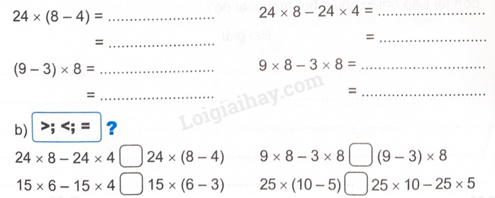 a) Tính giá trị của biểu thức (theo mẫu) rồi viết dấu >; < hoặc = thích hợp vào chỗ chấm.