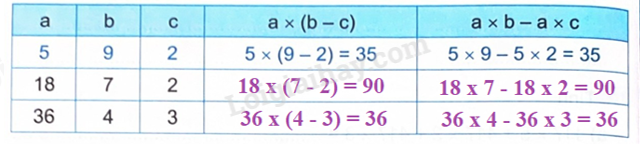 Áp dụng các công thức: a x b – a x c = a x (b – c)