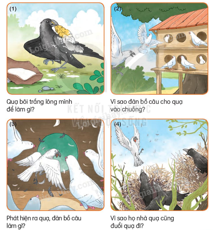 Tranh 1: Quạ bôi trắng lông mình để giả làm bồ câu