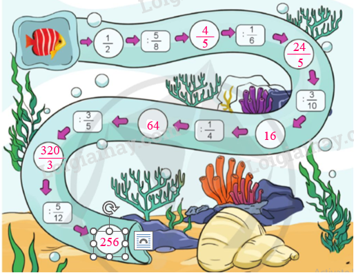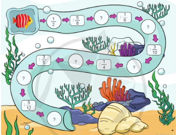 Hãy chỉ đường giúp chú cá về nhà bằng cách thực hiện các phép chia phân số: