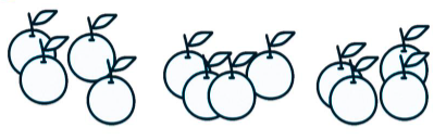 – Để xếp đều 12 qủa cam vào 3 đĩa ta thực hiện phép chia 12 : 3