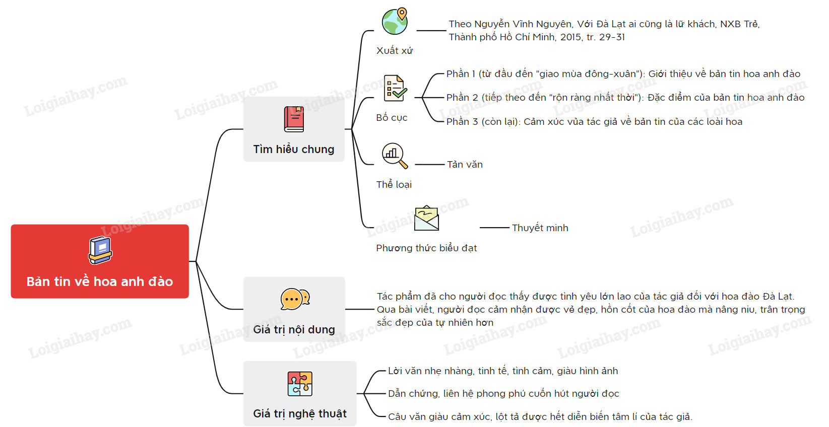 Sơ đồ tư duy văn bản Bản tin hoa anh đào: