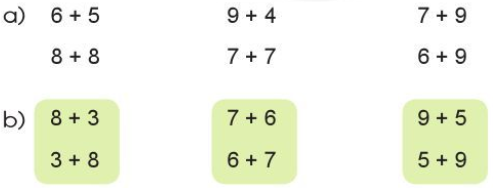 a)   6 + 5 = 11                     9 + 4 = 13                    7 + 9 = 16