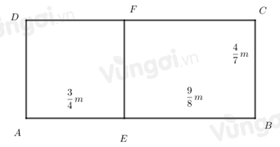 Một hình chữ nhật có diện tích \(\dfrac{{48}}{{35}}\) \(m^2\) và có chiều dài là \(\dfrac{6}{5}\) m. Tính chiều rộng của hình chữ nhật đó.