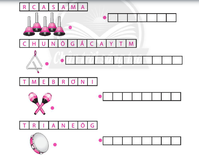 Sắp xếp chữ cái sau đó nối tên với hình ảnh nhạc cụ