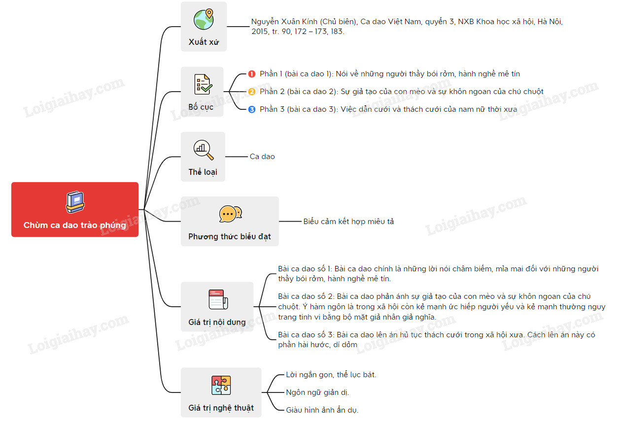 Sơ đồ tư duy văn bản Chùm ca dao trào phúng: