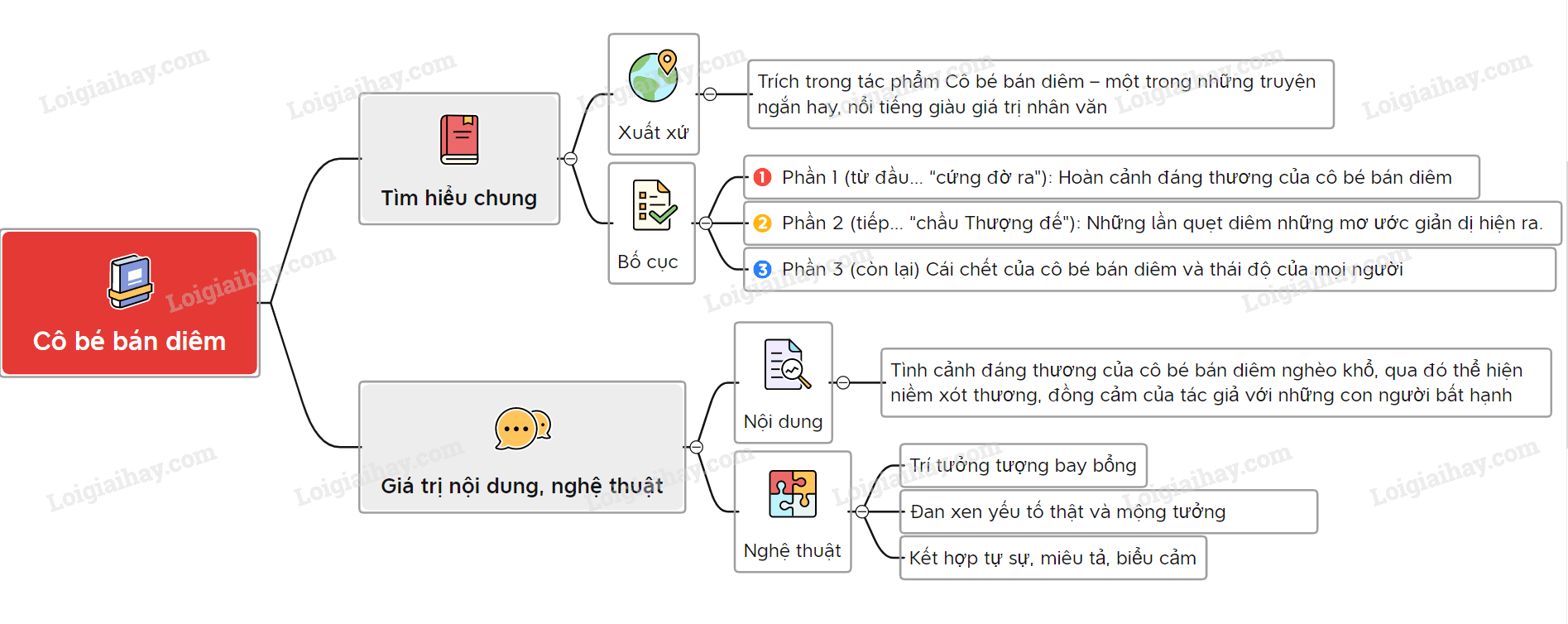 Sơ đồ tư duy về đoạn trích “Cô bé bán diêm”: