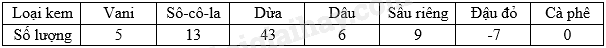 Số lượng kem bán được trong một ngày tại một cửa hàng được ghi lại vào bảng thống kê sau.
