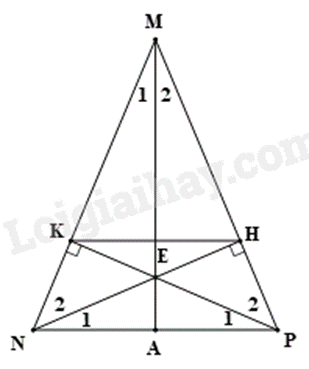 Cho \(\Delta MNP\)cân tại M \(\left( {\widehat M < {{90}^0}} \right)\). Kẻ NH \( \bot \)MP \(\left( {H \in MP} \right)\), PK \( \bot \)MN \(\left( {K \in MN} \right)\). NH và PK cắt nhau tại E.