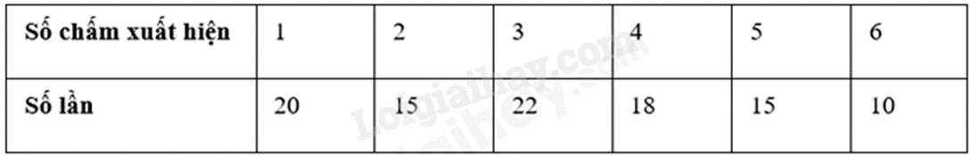 b) An gieo một con xúc xắc 100 lần và ghi lại số chấm xuất hiện ở mỗi lần gieo được kết quả như sau: