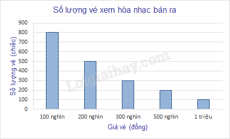 Quan sát biểu đồ sau và cho biết: Có bao nhiêu vé mệnh giá \(300\) nghìn đồng được bán ra?