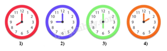 Trong các hình đồng hồ sau, hình nào có góc tạo bởi hai kim đồng hồ là góc nhọn?