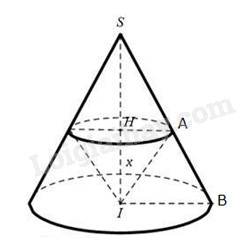 – Đặt \(IH = x\) lập công thức tính thể tích khối nón theo \(x\) .