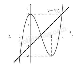 Vẽ đường thẳng \(y = x – 1\) trên cùng hệ tọa độ với đồ thị hàm số \(y = f’\left( x \right)\) ta thấy \(f’\left( t \right) \ge t – 1 \Leftrightarrow \left[ \begin{array}{l} – 1 \le t \le 1\\t \ge 3\end{array} \right.\)