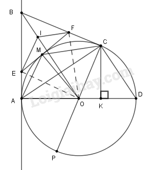 Suy ra \(\widehat {BCO} = \widehat {BAO} = {90^0}\), do đó: \(BC \bot OC\) tại \(C\).