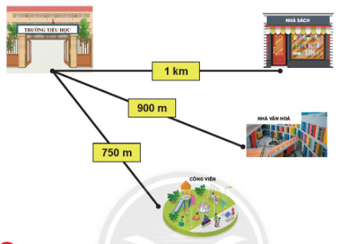 Vậy đoạn đường từ trường học đến công viên gần nhất, đoạn đường từ trường học đến nhà sách xa nhất.