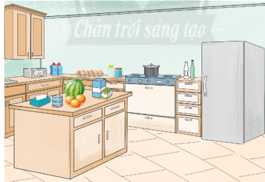 Các vật dạng khối hộp chữ nhật: tủ lạnh, tủ bếp, bàn, bếp ga, lò vi sóng, hộp giấy