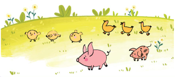 Em xác định số con gà ,số con vịt và số con lợn, so sánh và tìm con vật có nhiều nhất.