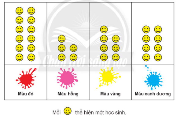 Biểu đồ tranh sau đây biểu thị số học sinh một lớp 2 lựa chọn màu sắc các bạn yêu thích nhất.