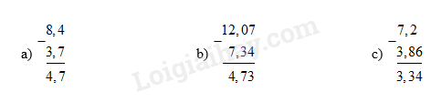 – Viết dấu phẩy ở hiệu thẳng cột với các dấu phẩy của số bị trừ và số trừ.