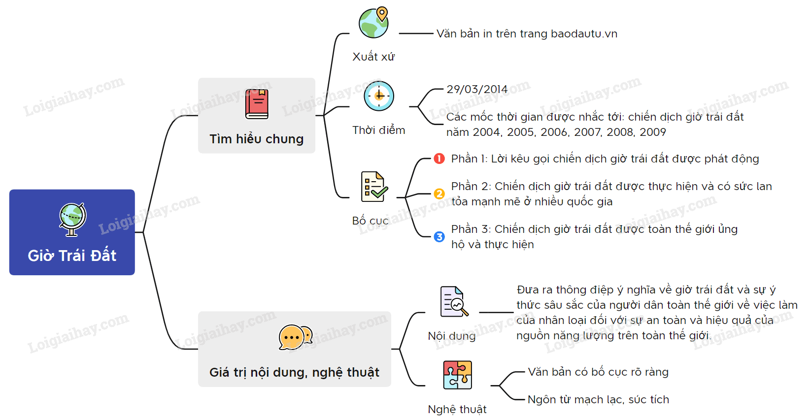 Sơ đồ tư duy về văn bản “Giờ Trái Đất”: