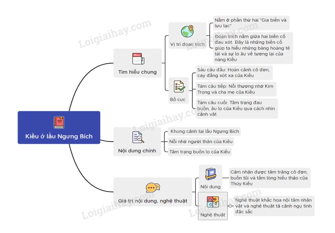 Sơ đồ tư duy về đoạn trích “Kiều ở lầu Ngưng Bích”: