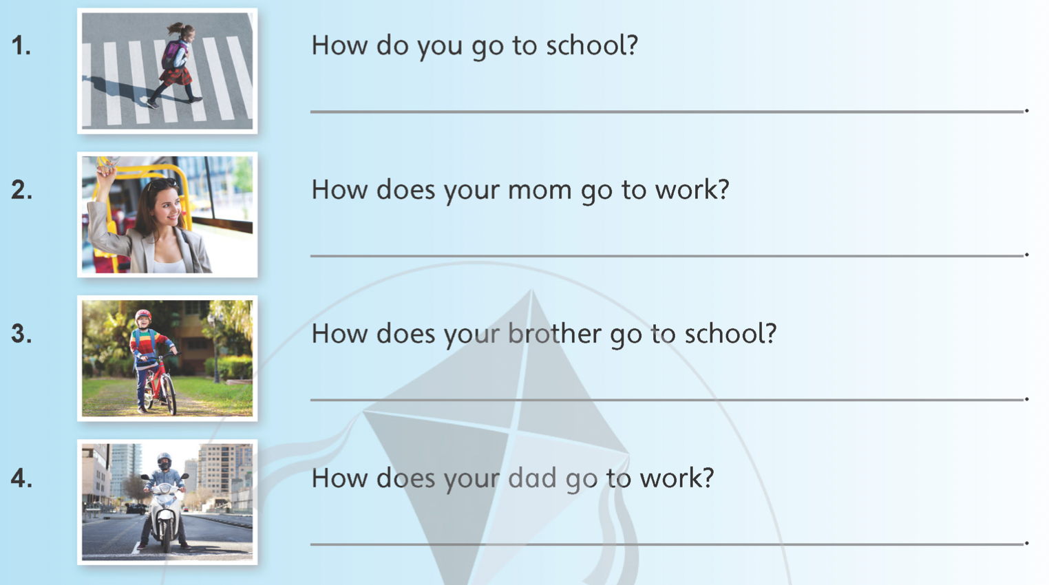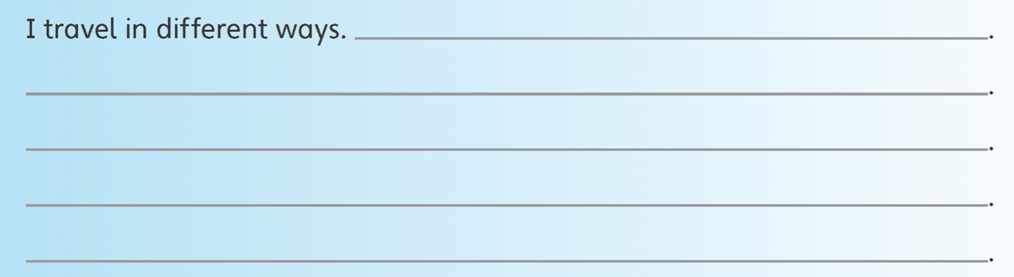 Look and read. Write the answers. Read and complete the text. How do you travel? Write 30-40 words. Begin with the following sentence.