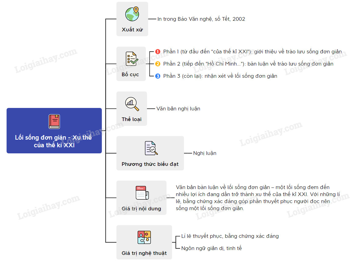 Sơ đồ tư duy văn bản Lối sống đơn giản – Xu thế của thế kỉ XXI: