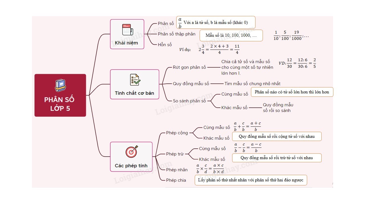 Sơ đồ tư duy: Phân số – hỗn số lớp 5
