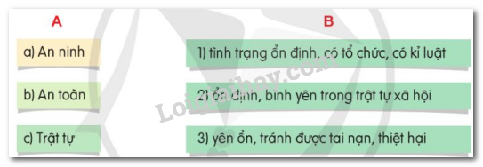Tìm nghĩa ở bên B phù hợp với mỗi từ ở bên A