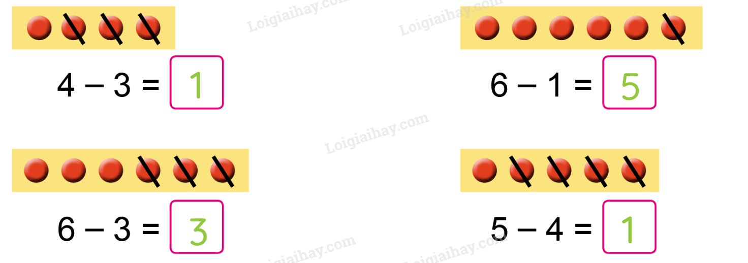Quan sát hình vẽ, điền số thích hợp để được phép trừ đúng.