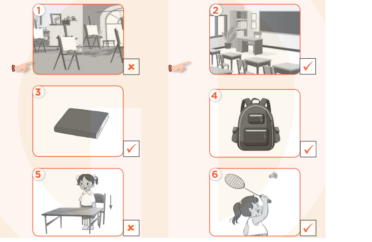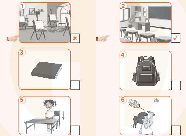 (Nghe và đánh dấu tích hoặc dấu gạch chéo.)