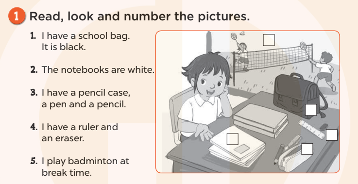 (Đọc, nhìn và đánh số các đồ vật trong tranh.)